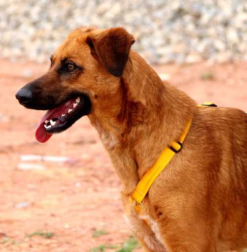 Esta menina é uma cadela de porte médio, muito meiga e simpática, sendo também super carinhosa.