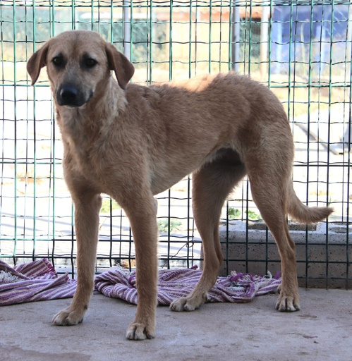 Esta menina é uma cadela de porte médio, muito tímida, precisa de tempo, paciência e um ambiente tranquilo para ganhar confiança e sentir-se segura.