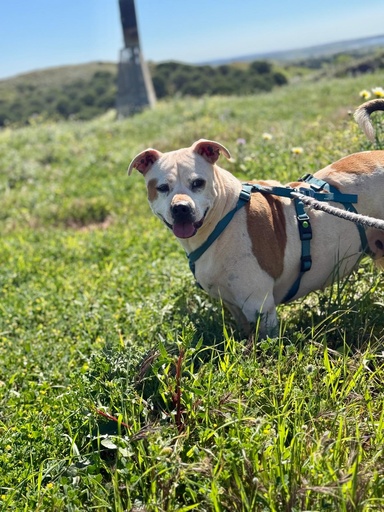 Esta menina é uma cadela de porte médio, muito carinhosa e simpática, adora companhia e momentos de afeto.  Gosta de brincar e é uma presença alegre e bem-disposta.
